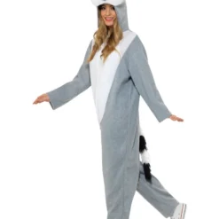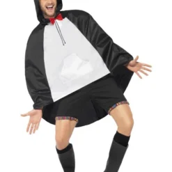Dit kostuum bestaat uit een jumpsuit met capuchon.