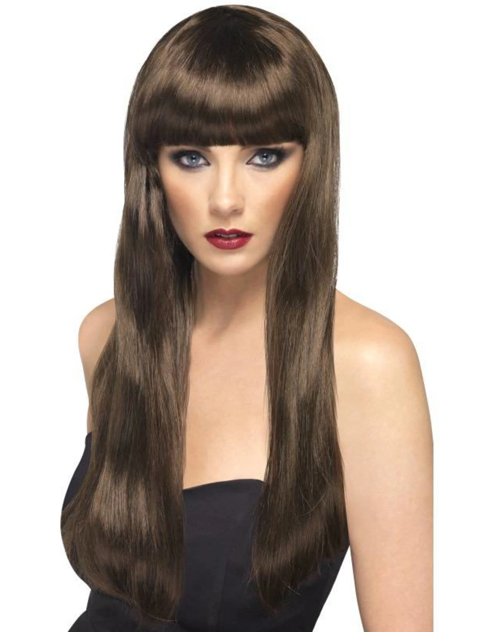 Lange Bruine Beauty Pruik met pony