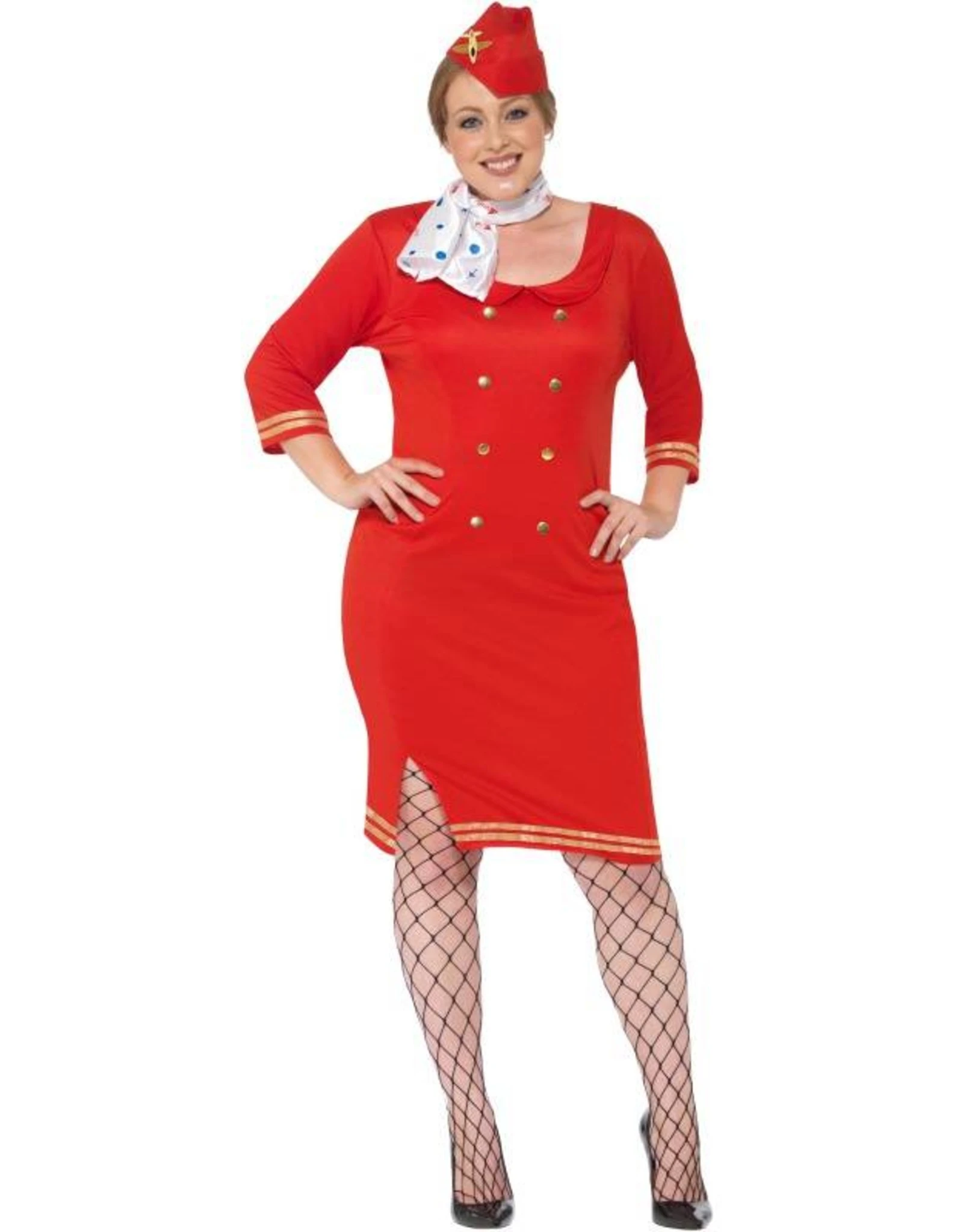 Dit kostuum bestaat uit een halflange jurk, hoedje en wit sjaaltje met vliegtuigprint.