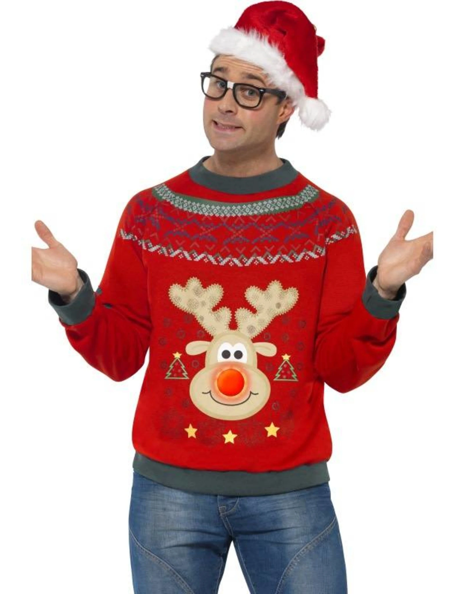 Foute Kersttrui Rudolf Rendier met led-verlichting.