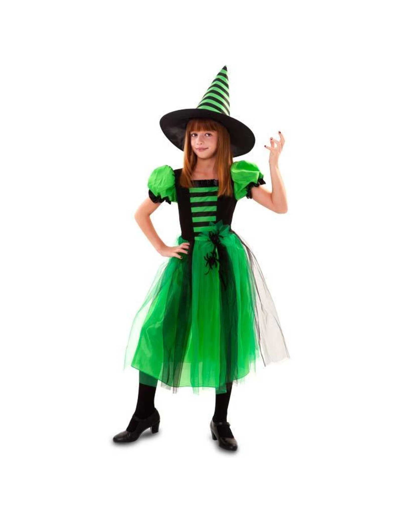 Dit kostuum bestaat uit een jurk met spinnen en hoed.