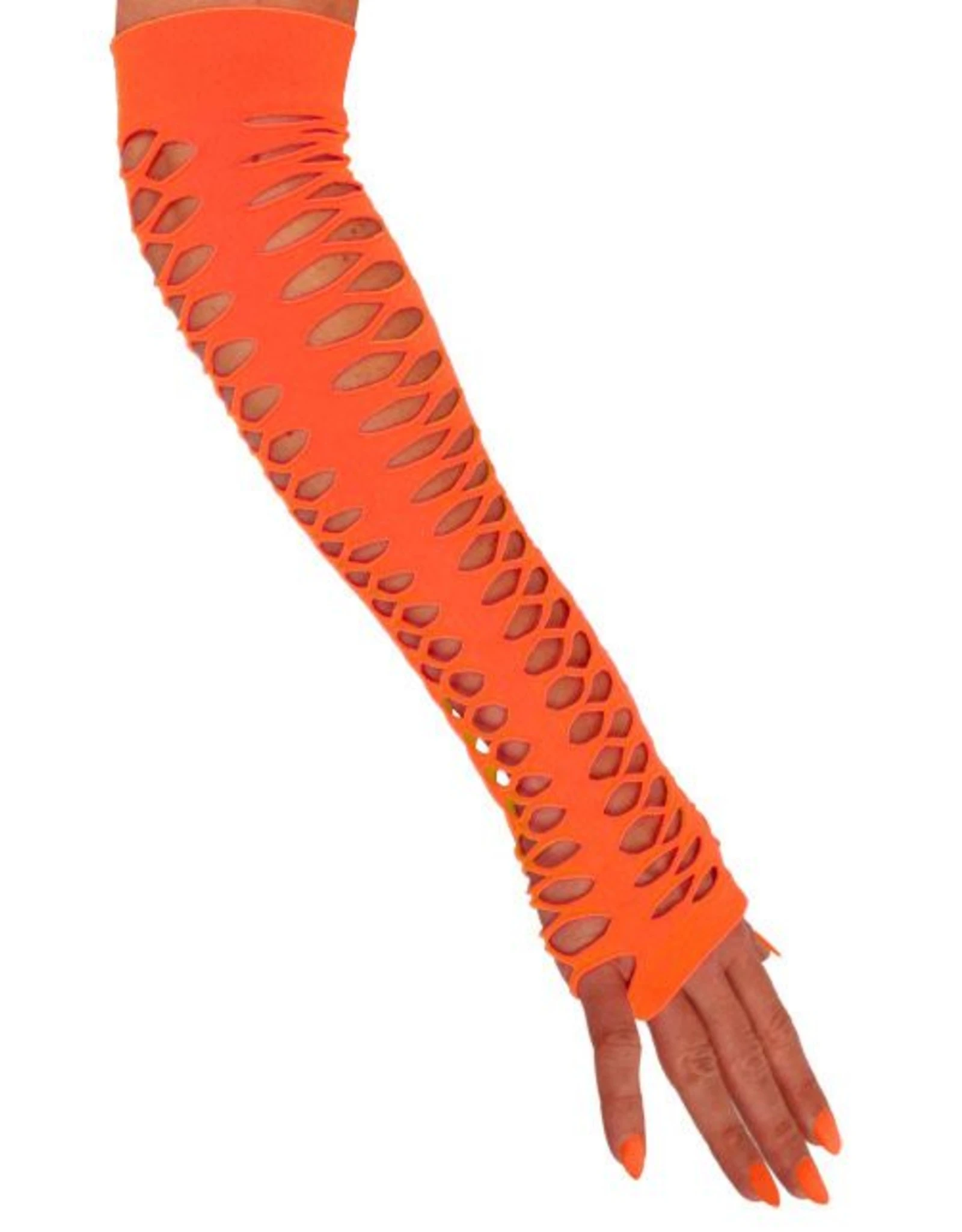 Handschoenen vingerloos grote gaten oranje 40 cm