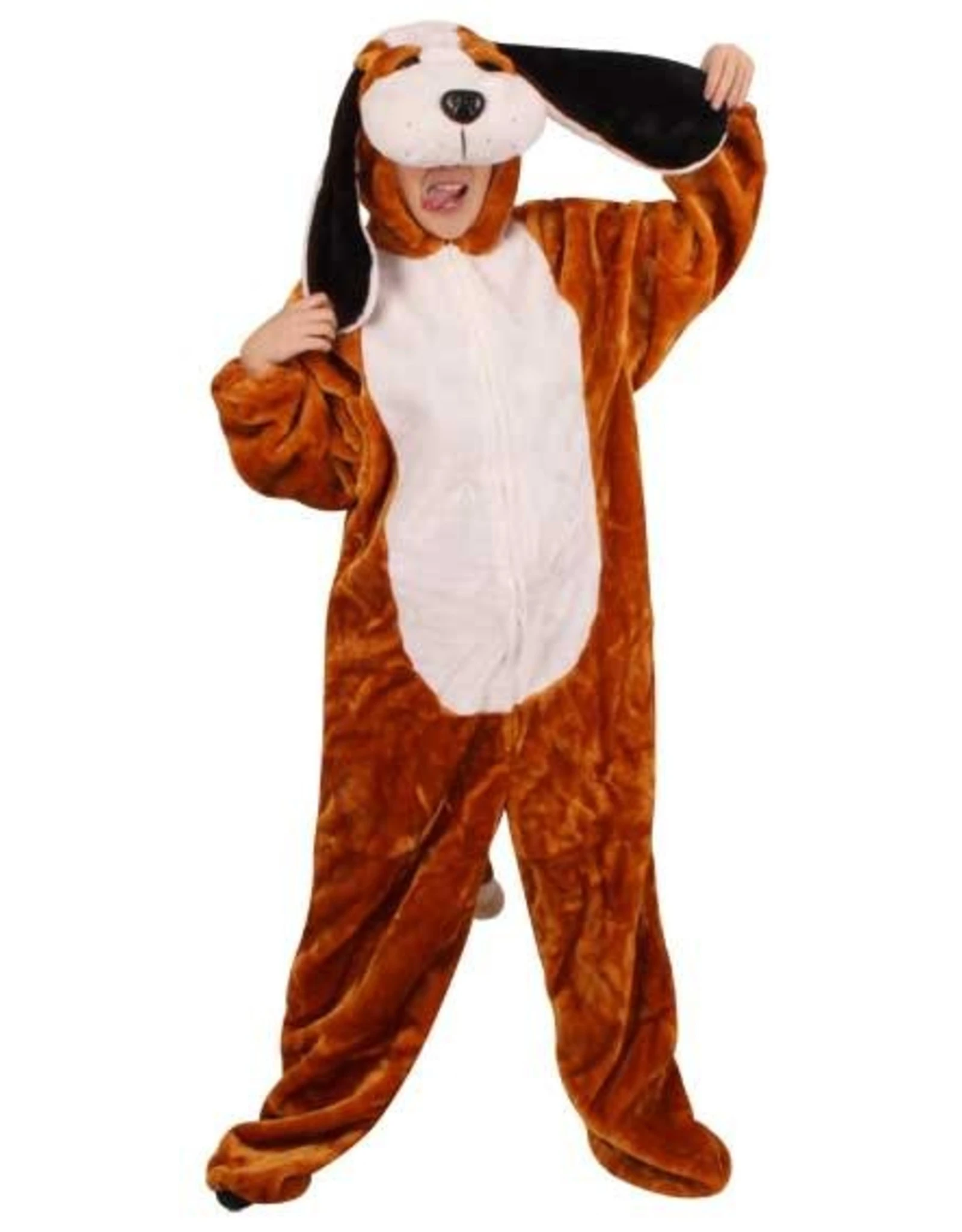 Dit kostuum bestaat uit een jumpsuit met capuchon.