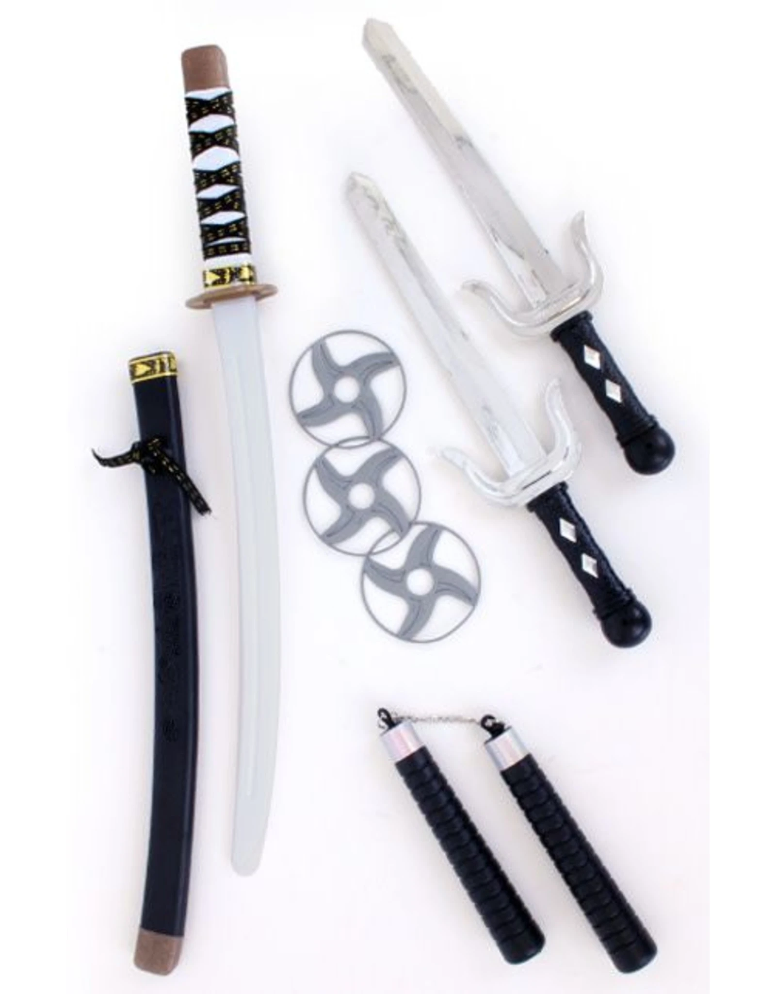 Ninjaset 4-delig bestaande uit: zwaard, sterren, dolken en nunchaku