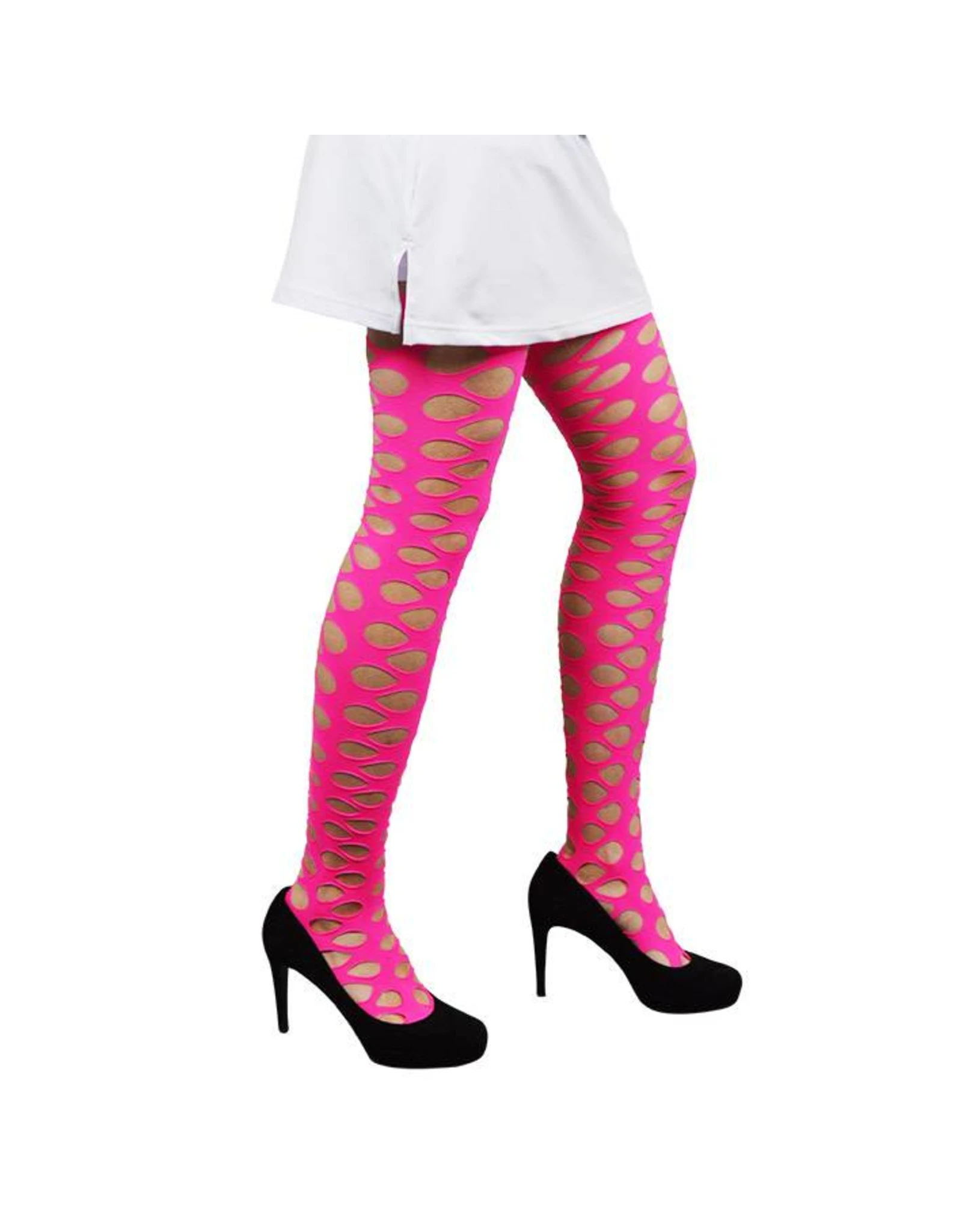 Panty grote gaten fluor pink