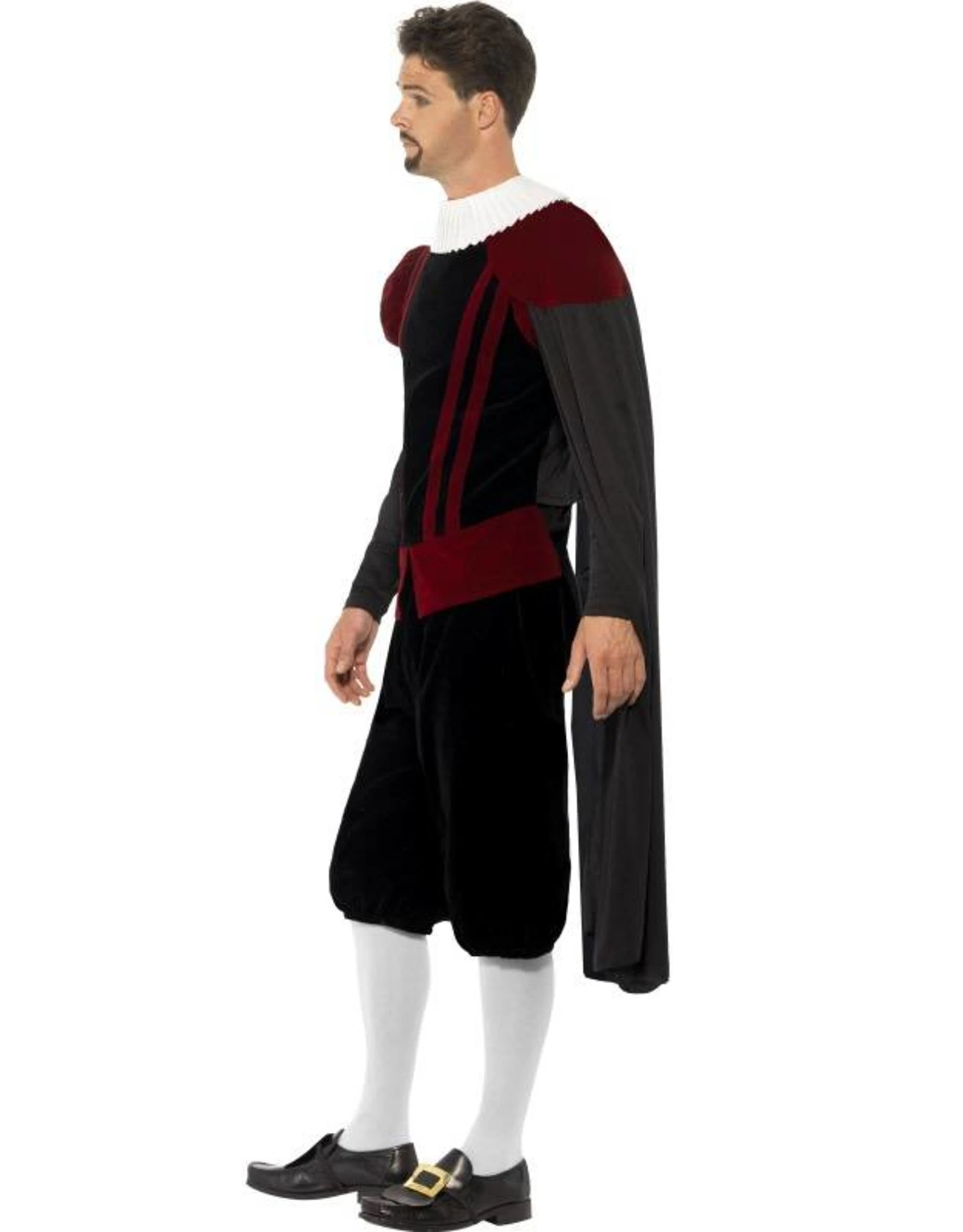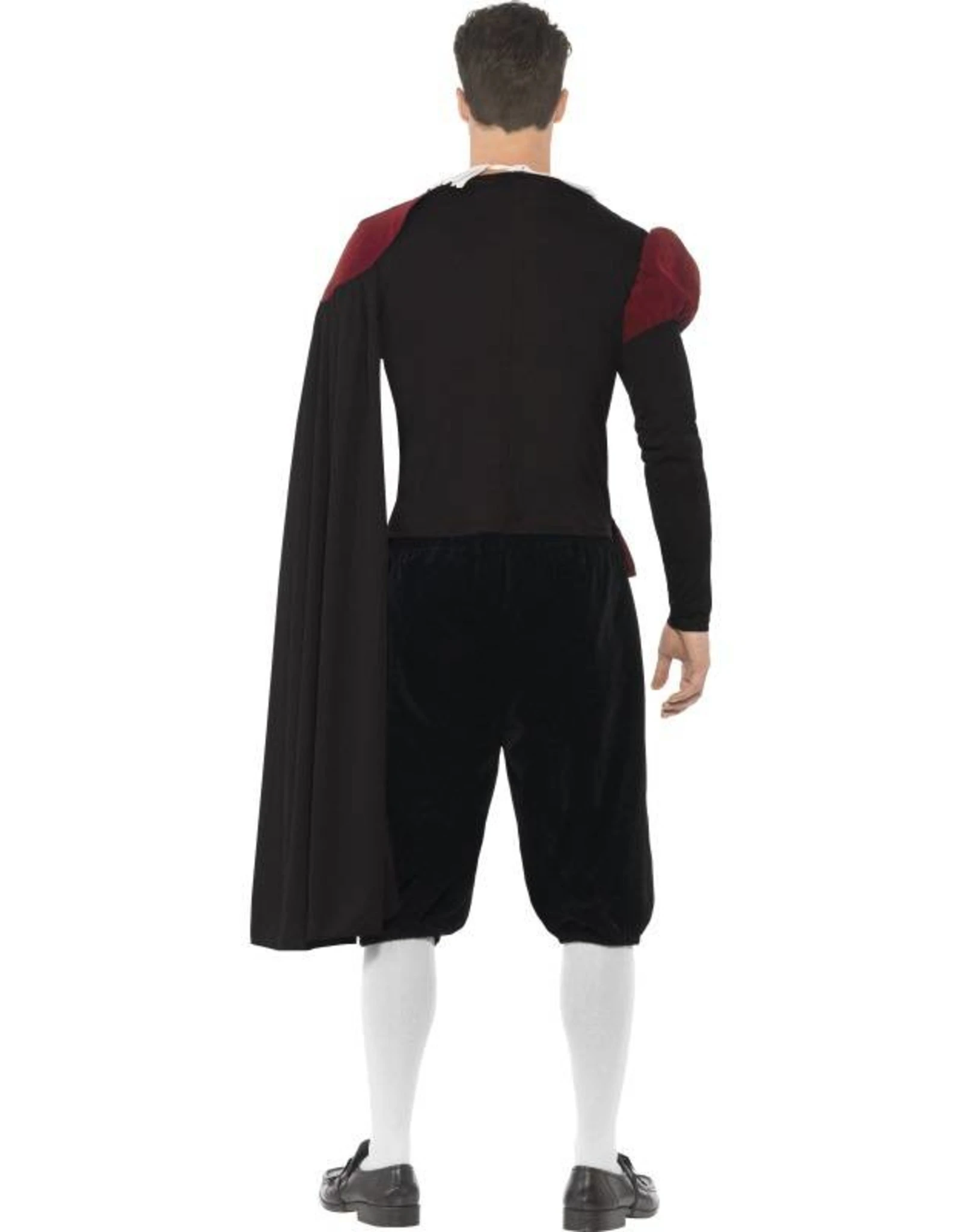 Dit kostuum bestaat uit een shirt, broek, cape en kraag.
