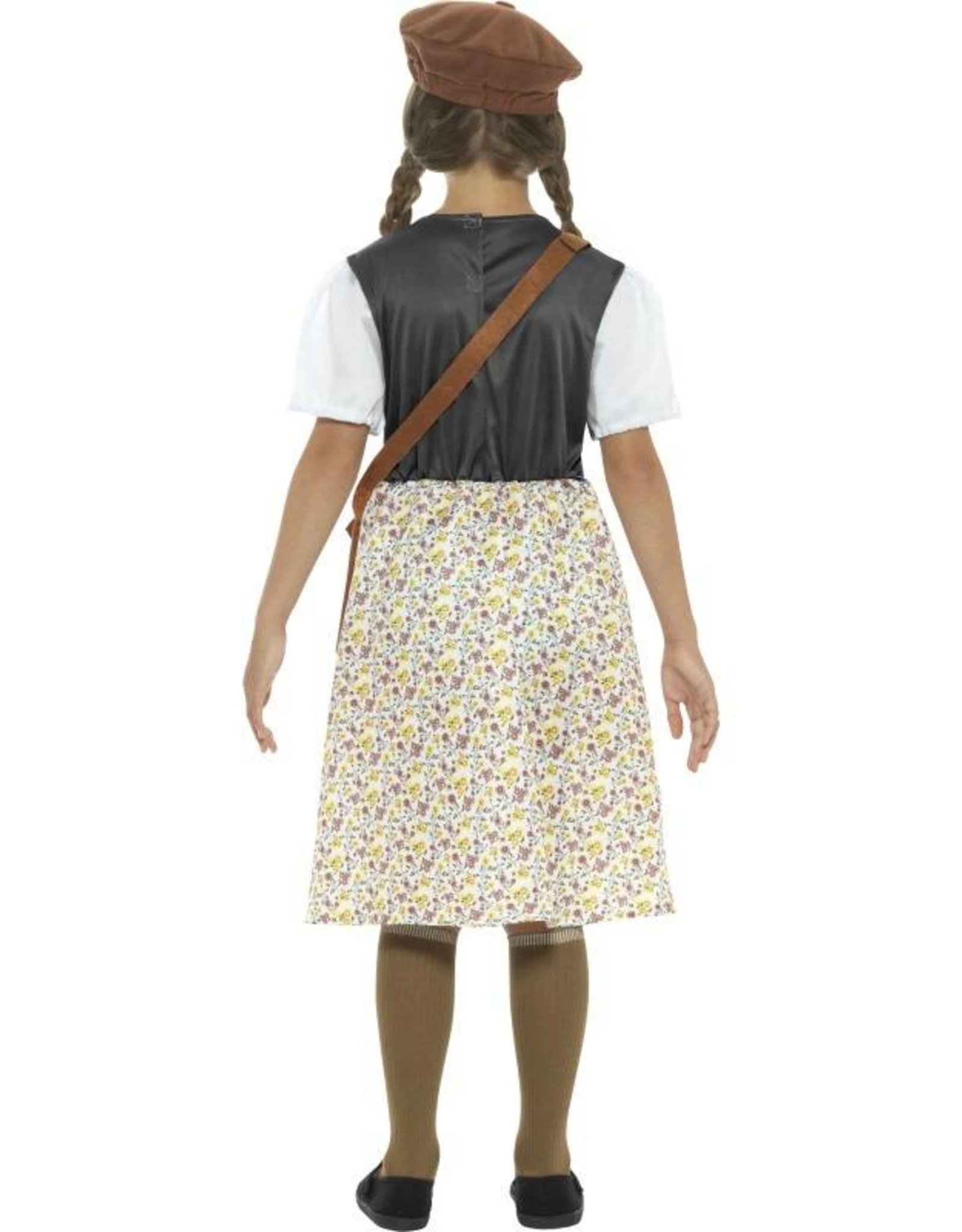 Dit kostuum bestaat uit een jurk, muts, tas en naamlabel.
